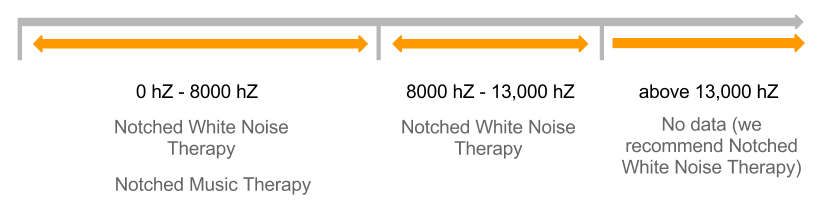 Please note - Notched White Noise has shown efficacy in individuals with a tinnitus frequency up to 13,000 hZ (A.K.A. 13 khZ), hence our recommended treatment protocol: